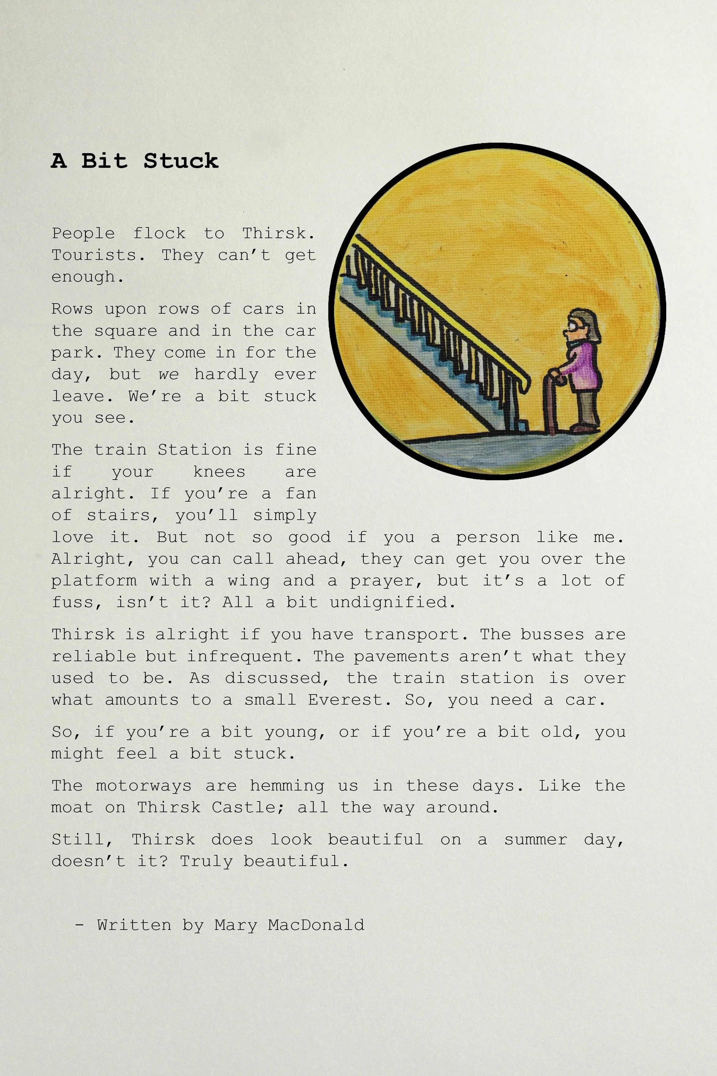 Co-created with an intergenerational group in Thirsk, this illustrated map focusses memories rather than landmarks. Each illustration, co-created with a participant, links to story, exhibited alongside the map.